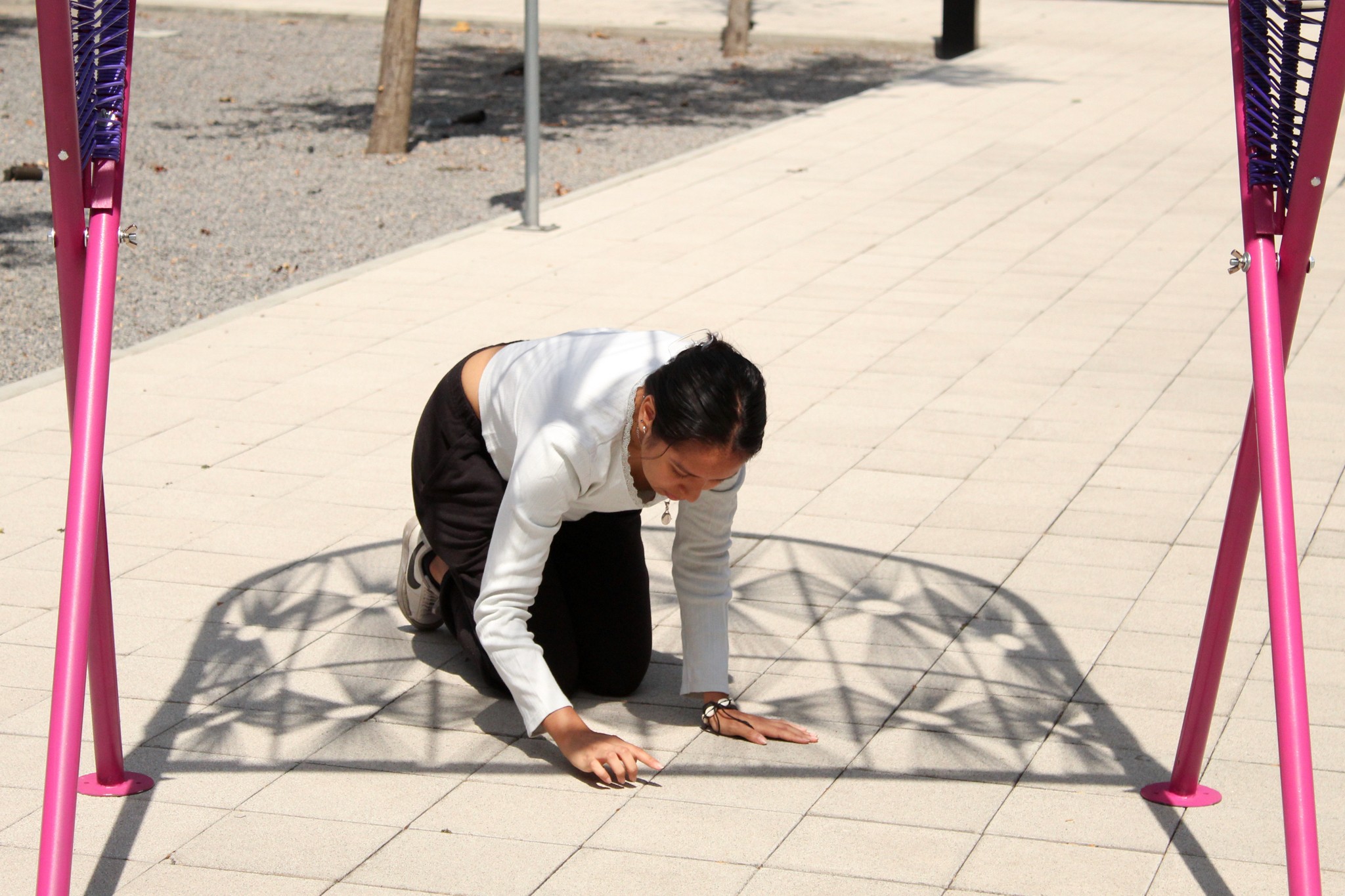 Hoja is a shadow module that reclaims solitary alleys in Mexico City as safe, playful spaces for children. Its leaf inspired geometry and butterfly roof shell scatter shadows across the ground, drawing kids into moments of curiosity and imagination. Built locally and co-created with residents, its carbon steel base and detachable traditionally woven top allow for easy assembly, repair, and maintenance.